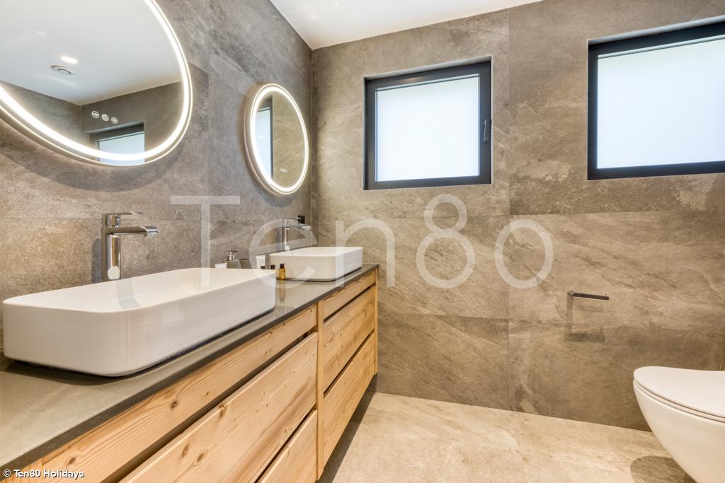 On the ground floor, there are 3 bedrooms (which can be configured with a double bed or two single beds), each with its own en-suite bathroom.